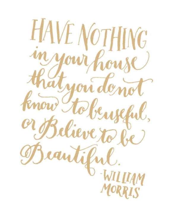 2. Give yourself guidelines: The William Morris quote is my mantra this year. Do I think it's beautiful? Keep it. Do I think it's useful? Keep it. If I can't say YES to one or both of those questions, it's gone.