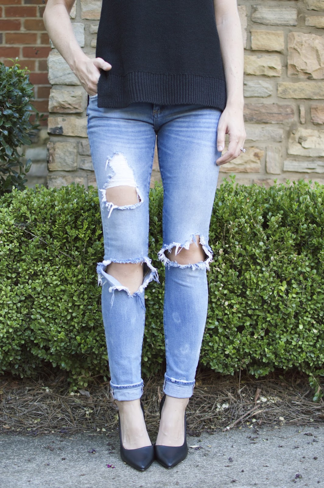 Last, but certainly not least, just remember that absolutely anyone can wear distressed denim. It just adds a relaxed fit and visual interest to an outfit. I think they're a wardrobe essential. So get ya some.